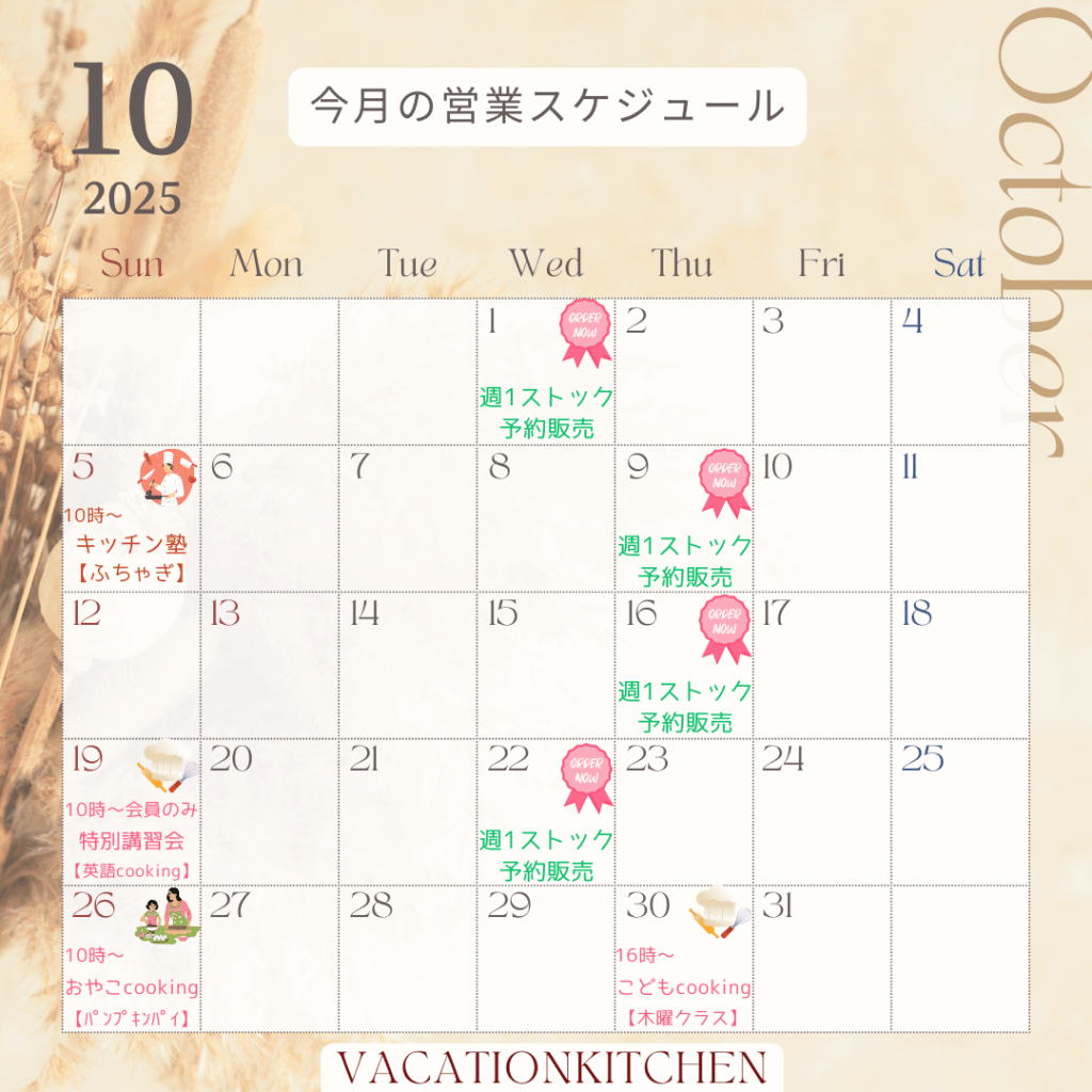 【2025年10月の週1ストックご予約&クッキング等スケジュールのおしらせ】
