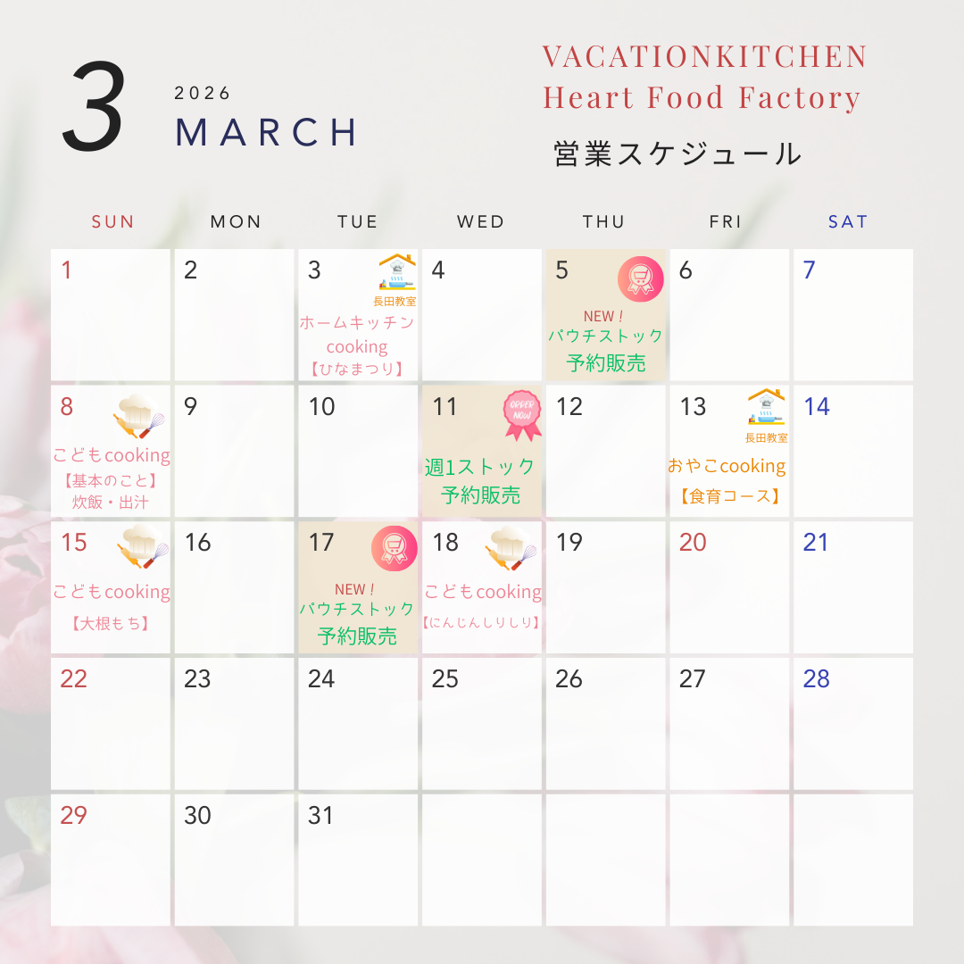 【2026年3月のストックご予約&クッキング等スケジュールのおしらせ】